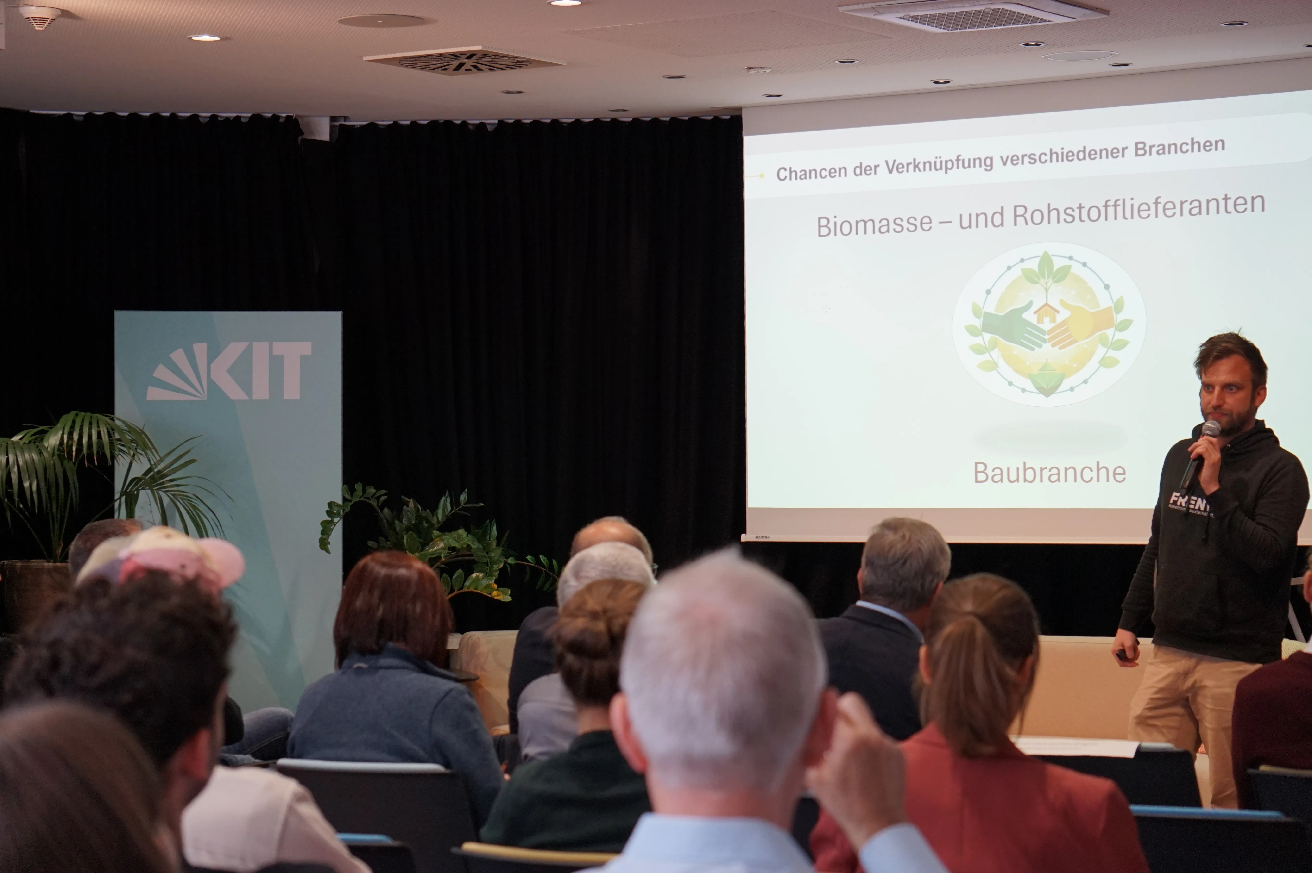 - Elena Boermann gab Einblicke in die innovative Forschung des KIT und zeigte auf, dass neben den “Klassikern” der Bioökonomie, auch Rohstoffe wie die (Flecht)weide, Seegras oder auch Pilzmycel eine gute Grundlage für künftige Baustoffe sein können, insbesondere aufgrund ihrer Kreislauffähigkeit. “Denn die Nutzung nachwachsender Rohstoffe schont die Ressourcen und die Nutzung von Rest- und Nebenstoffen führt zu effizienteren Stoffkreisläufen”, so Boermann.
